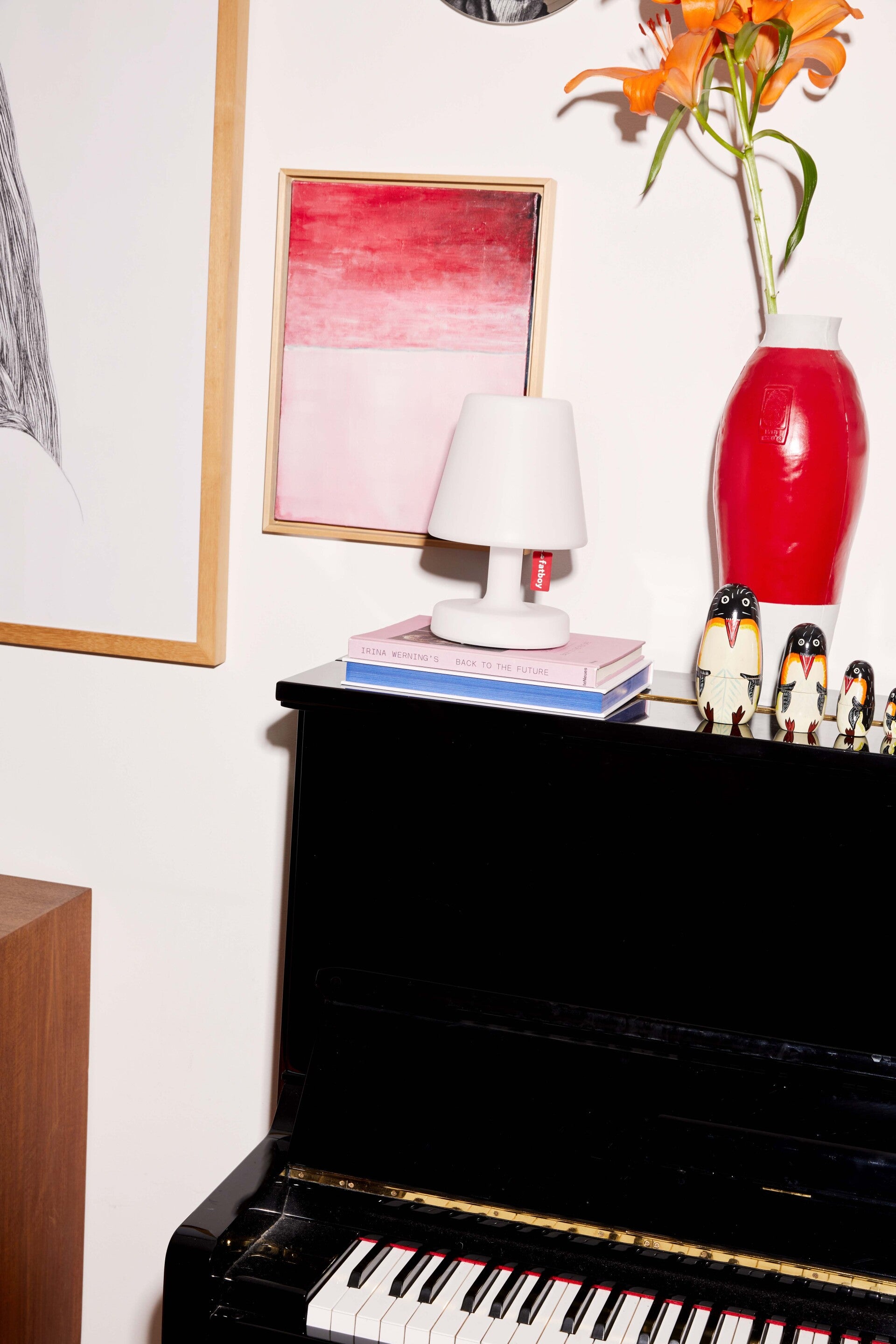 Edison the Petit neem je makkelijk overal mee naartoe. Het draadloze LED tafellampje verlicht royaal, van kap tot voet. Door aan het Fatboy-labeltje te trekken, zet je de kleine tafellamp aan of uit, of wijzig je de lichtsterkte. Hoe langer je aan het labeltje trekt, hoe feller het lampje namelijk schijnt. Ook handig: bij het aanzetten onthoudt hij de laatstgekozen stand. Zit er een vlekje op je lamp? Dat veeg je er met een zachte, vochtige doek zo vanaf. Zo blijft je tafellampje stralend wit.